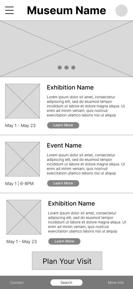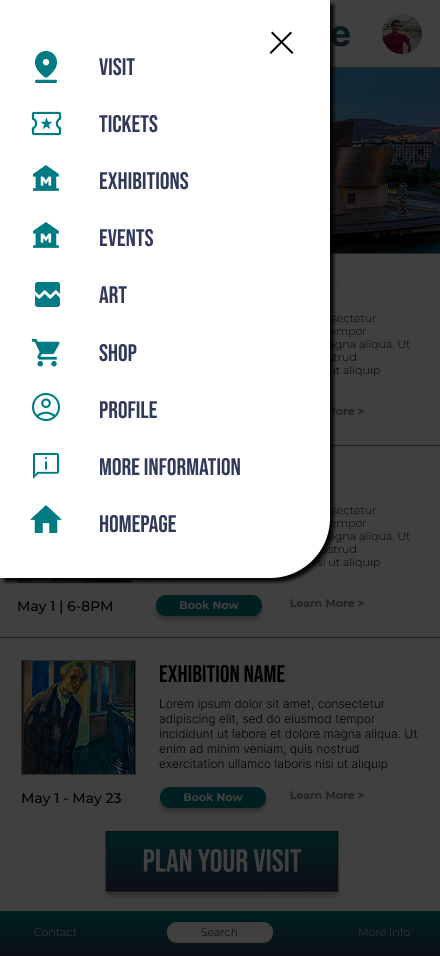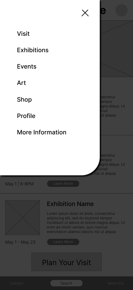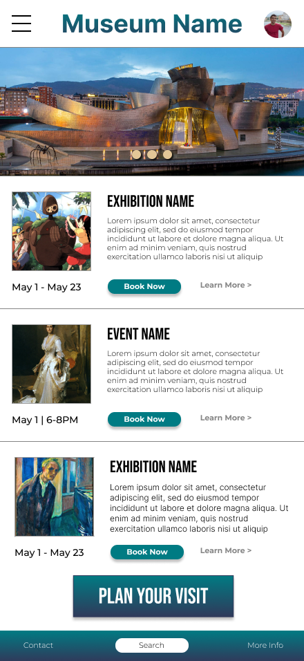 The museum app creates a more intuitive, accessible, and engaging experience for visitors by streamlining navigation and prioritizing key actions such as planning a visit, booking tickets, and exploring exhibitions. By improving information architecture, visual hierarchy, and access to essential features, the app reduces friction and enables users to achieve their goals quickly and confidently. This improved experience encourages deeper engagement with museum content while supporting the museum’s goals of accessibility, increased attendance, and community outreach.