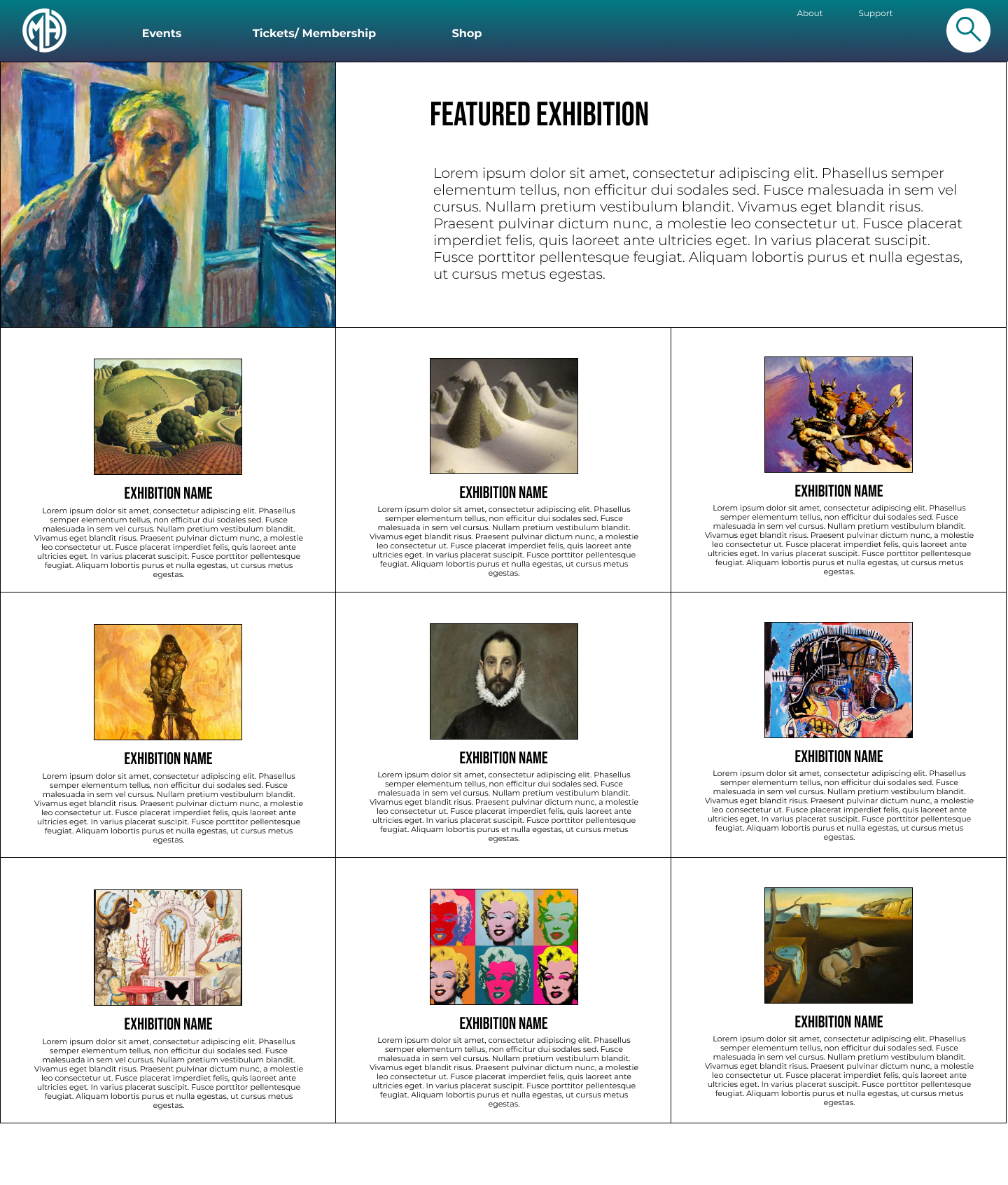 A desktop-focused website for a public art museum created to showcase exhibitions and events, share important visitor information, and support users in planning and scheduling their visits.