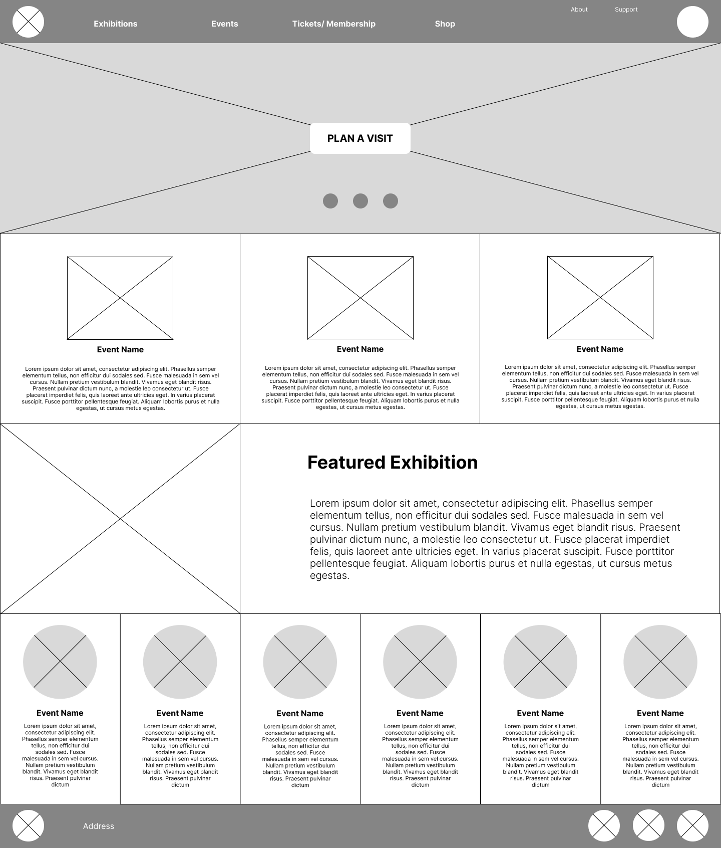 The objective was to design a clear and accessible museum website optimized for desktop use that helps users easily explore exhibitions and events, access essential museum details, and plan a visit without friction. The design prioritizes usability and engagement to encourage increased attendance and interaction with museum content.
